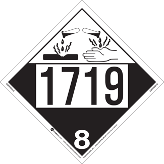 UN 1719, Hazard Class 8 – Corrosive Placard, Removable Self-Stick Vinyl